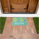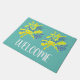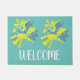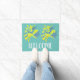 Welcome mat with colourful yelow wattle flower mimosa original Australian art illustration by artist Sacha Grossel featuring these cute yellow flowers on a blue simple background. Colourful and vibrant. Perfect for a nature or wildlife lover. Australian souvenir.