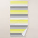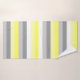 Cheerful shades of yellow, muted greys and white striped bath decor.