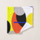 Funky Abstract Art Yellow, Blue, Black, Orange And White Minimalistic Stylised Bath Towels to add to your home / office / business décor collection. A cool present / gift idea for all who love custom design items, positive vibes, minimalism etc.