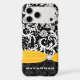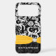 Yellow & White Damask Printed Faux Rhinestone