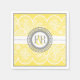 Yellow, white lace pattern wedding paper napkin with initials, featuring a pattern with yellow and white lace, a white stripe along the napkin and a dotted line over it and your initials in a frame with grey dots. There is a grey border around it. This trendy and cute girly paper napkin is perfect for other special occasions too such as bridal showers, birthday parties, baby showers, anniversaries etc. You can personalise it and add your message or monogram.
