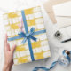 Yellow White Plaid Stripes Birthday Wrapping Paper