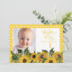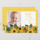 Cute yellow and white polka dots and sunflowers baby girl's first birthday party photo invitation with text, "Brighter than the sun, our little angel is turning one." Personalise with your photo on the front and party information on the back.