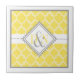 Yellow, white quatrefoil monogram wedding keepsake tile