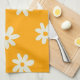 Yellow White Retro Y2K Flower Pattern Tea Towel