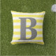 Yellow White Stripes Monogram Initial Square Outdoor Pillow will brighten up your patio furniture.