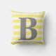 Customisable yellow background with white stripes on both sides of the pillow. Big monogram initial in grey centred on front.