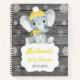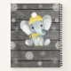 Winter Rustic Yellow Elephant for a Baby Shower Book. Notebook with wooden background and snowflakes for gender neutral baby shower. Memory book.