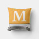 Yellow With B/W Stripes Custom Monogrammed Cushion