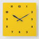 Yellow with Numbers Square Wall Clock
