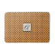 Simple yet decorative, this design of graphically woven rattan adds the personal touch to your bath mat! The main colour is golden yellow, and the solid dark brown background can be replaced by you. Change this product's base colour to play with new effects! The custom initial is placed on a light square with black border. Text can easily be customised, and the entire monogram can be resized, repositioned or removed. Also text font, size and colour can be adjusted.