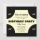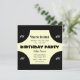 Pale yellow centre on black birthday party invite. Yellow and black gives this a modern look. Add the age or leave it blank - Complete with RSVP