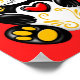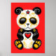 This unique design features an adorable sitting baby panda bear decorated with yellow swirls and drops. A large heart is in the middle of the bear's chest with a small five point star appearing at the top of the forehead. These simple patterns are inspired by the Day of the Dead sugar skulls as are the flower pedals surrounding each dark eye. The stitched mouth also gives the panda a cute zombie appearance. This cute symmetrical design is a unique representation of this beautiful creature.
