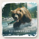 This plastic coaster set is shown with a photo art print of a bear in the river fishing in the famous Yellowstone National Park.