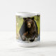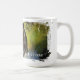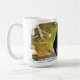 This ceramic coffee mug is shown with a photo print of a bear running in the river in the famous Yellowstone National Park.