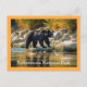 Postcard is shown with a photo print of a black bear in the river in Yellowstone National Park.