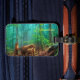 This luggage tag is shown with a photo print of a wild Bear with cubs in Yellowstone National Park.