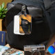 This luggage tag is shown with a photo print of a wild Black Bear in Yellowstone National Park.