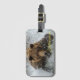 This luggage tag is shown with a photo print of a wild Bear in Yellowstone National Park.