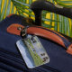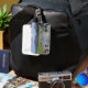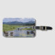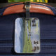 This luggage tag is shown with a photo print of a herd of buffalo in Yellowstone National Park.