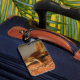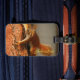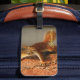 This luggage tag is shown with a photo print of a cute squirrel wild in Yellowstone National Park.