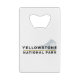 Yellowstone National Park Text with mountain design. Yellowstone National Park contains over 3500 acres of natural park spread over Wyoming, Idaho, and Montana. It sits atop the volcanic Yellowstone caldera and features natural geysers.