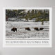 Many Bison searching for grasses hidden under the snow in Yellowstone National Park.