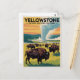 Capture the timeless spirit of America's first national park with this vintage-style postcard featuring Yellowstone. The artwork showcases a herd of bison grazing in a meadow with the iconic Old Faithful geyser erupting in the background. The retro aesthetic and "Faithful For Over 150 Years" tagline make this a perfect memento for nature lovers and a beautiful way to share a piece of this legendary park.