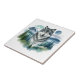 This lovely ceramic tile is shown with a Yellowstone wolf watercolor art print.