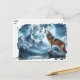 This postcard is shown with a watercolor art print of a wolf in Yellowstone National Park.