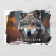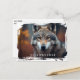 This postcard is shown with a photo print of a grey wolf of Yellowstone National Park.
