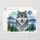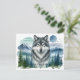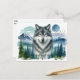 This postcard is shown with a watercolor art print of a wolf in Yellowstone National Park.