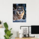 Poster is shown with a photo print of a Yellowstone wild wolf in winter season.