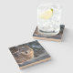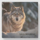 Sandstone coaster is shown with a photo print of a wild wolf in Yellowstone Park.
