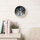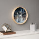 This wall clock is shown in a stylish Yellowstone wolves photo print.