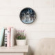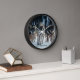 This wall clock is shown in a stylish Yellowstone wolves photo print.