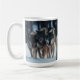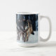 This ceramic coffee mug is shown with a photo print of wild wolves in Yellowstone National Park.