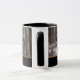 This ceramic coffee mug is shown with a photo print of wild wolves in Yellowstone National Park. Tan accents with Black interior and handle.