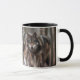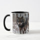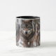 This ceramic coffee mug is shown with a photo print of wild wolves in Yellowstone National Park.