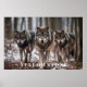 Poster is shown with a photo print of a wolf pack in Yellowstone Park.