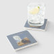 The coasters are gorgeous, a quality feel and heavy weight. They look like a precious archeological find. A rustic stone juxtaposed with a modern floral black and white print. I like the way the print goes slightly imperfect on the cut stone edges giving them a kind-of natural beauty.