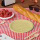 Modern paper plate featuring white and yellow chevron pattern. This is a part of a holiday collection "Merry Christmas Chevron" - matching items and other colours are available.