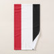 The Yemen flag is a horizontal triband. The used colours in the flag are red, white, black. The proportion of the Yemen flag is 2:3. The Flag of Yemen was adopted in 1990. The first use of the current flag design was in 1990.