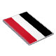 The Yemen flag is a horizontal triband. The used colours in the flag are red, white, black. The proportion of the Yemen flag is 2:3. The Flag of Yemen was adopted in 1990. The first use of the current flag design was in 1990.