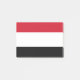 The Yemen flag is a horizontal triband. The used colours in the flag are red, white, black. The proportion of the Yemen flag is 2:3. The Flag of Yemen was adopted in 1990. The first use of the current flag design was in 1990.
