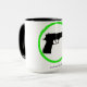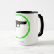 15 oz coffee mug with the yes guns sign, the opposite of the no guns sign. Image shows a Beretta with a green circle.