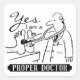 Funny Doctor stickers. Fun Cartoon Illustration Design shows a doctor examining a patient's feet with his stethoscope! The wording reads, "Yes I am a Proper Doctor"!