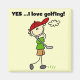 A male stick figure golfer with text that reads "Yes...I Love Golfing" is featured on golf T-shirts, hoodies, jerseys, mugs, cards, stickers, magnets, keychains, and other golf apparel and gifts.