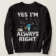 Yes I m Always Right Math Mathematician Math Teach Sweatshirt