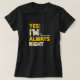 Yes I'm Always Right Math Teacher Mathematician T-Shirt
